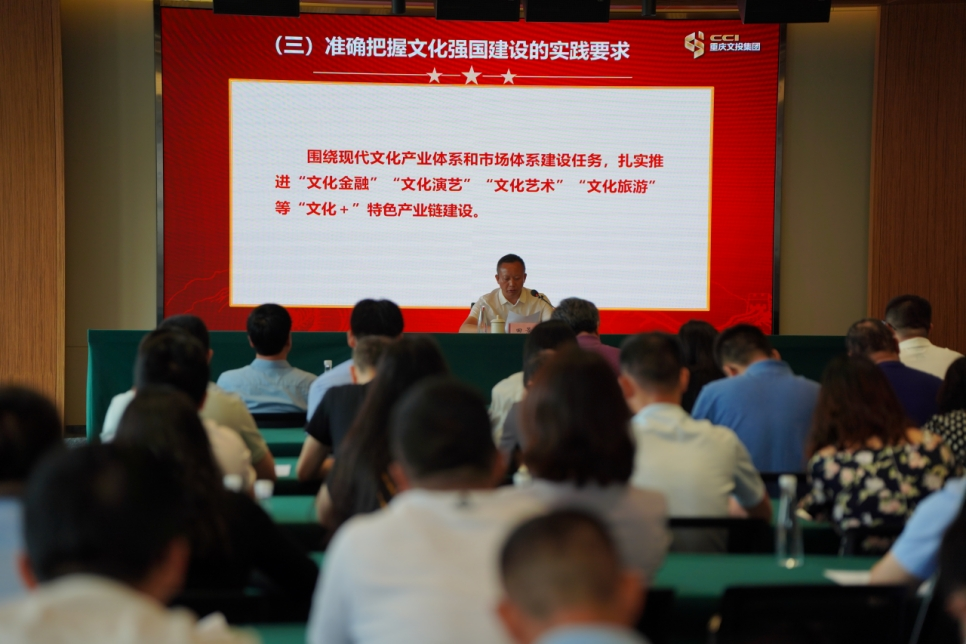 6月30日上午,按照中央、市委开展学习贯彻席大大新时代中国特色社会主义思想主题教育统一部署和市委组织部、市委宣传部工作要求,征途国际pg官网入口集团党委副书记、总经理田景斌以“深入学习贯彻席大大新时代中国特色社会主义思想,大力推动集团‘文化+’产业链高质量发展”为主题讲授专题党课,这是集团主题教育暨今年“党课开讲啦”活动第2堂专题党课。集团党委班子成员,全体党员,本部全体干部、子公司经营班子成员、集团派驻控股子公司负责人参加学习。市委宣传部主题教育巡回指导一组有关同志到会指导。