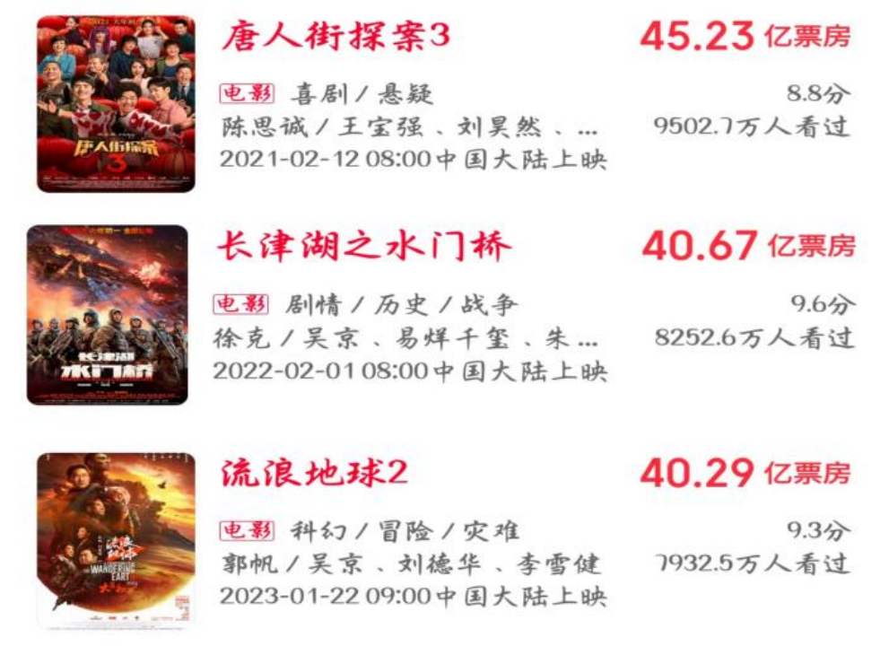 而事实也证明,这些影片单以票房而论,都取得了40亿+级别的好成绩,算得上是众望所归。