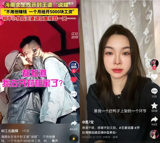 最近,“开封王婆”的热度愈发高涨,不仅多次登上抖音、微博等平台热搜,#王婆说媒#、#开封王婆#、#开封王婆太有梗了#等抖音话题的累计播放量超60亿次。