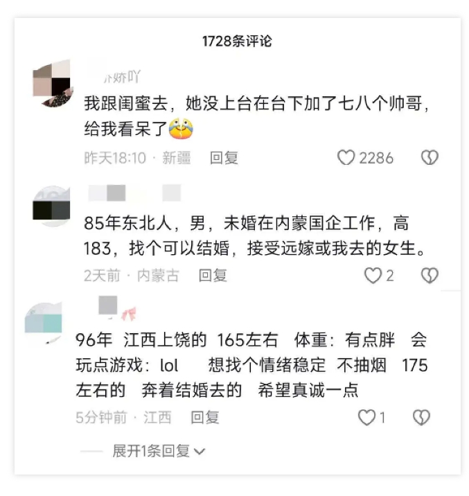 有女生没找到上台机会,却在台下加了不少男生的微信;有网友虽然没在现场,却默默翻起了评论区。